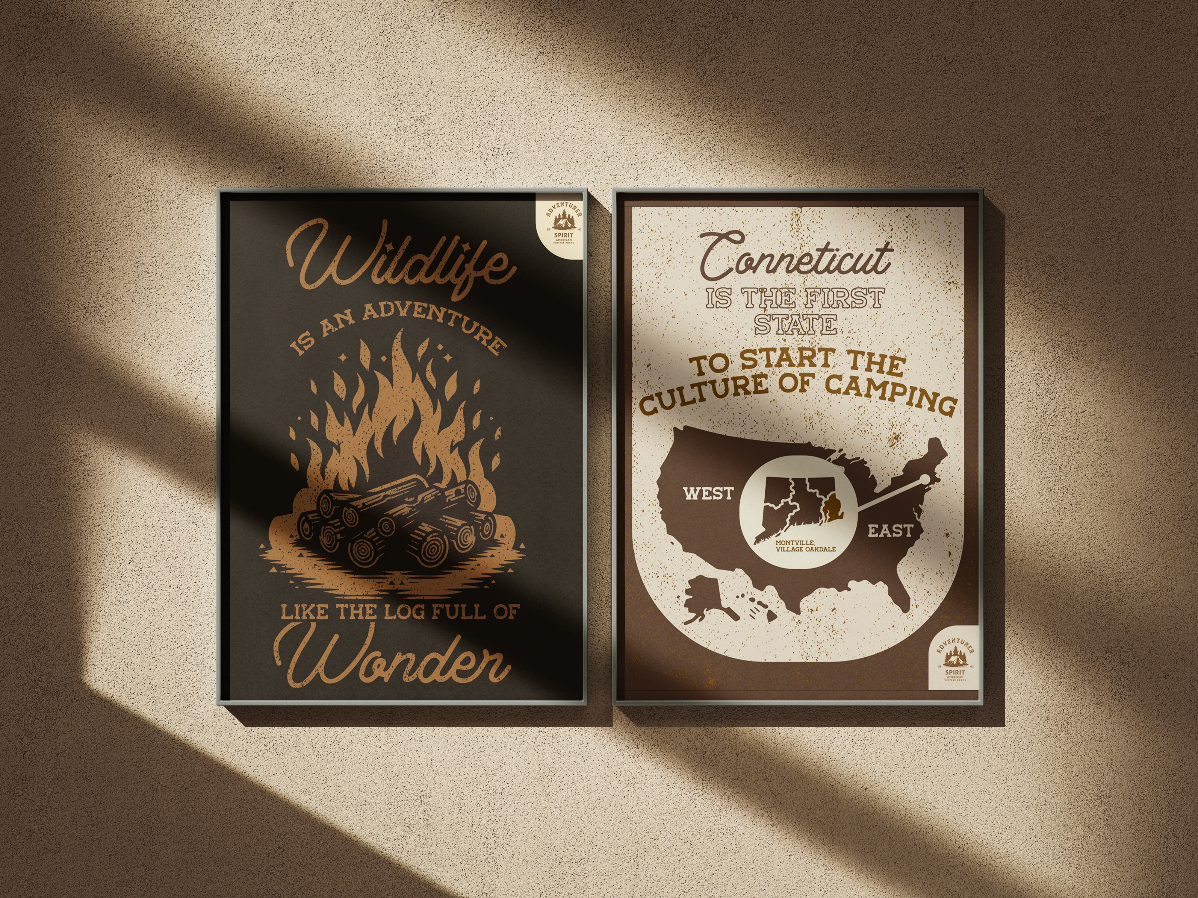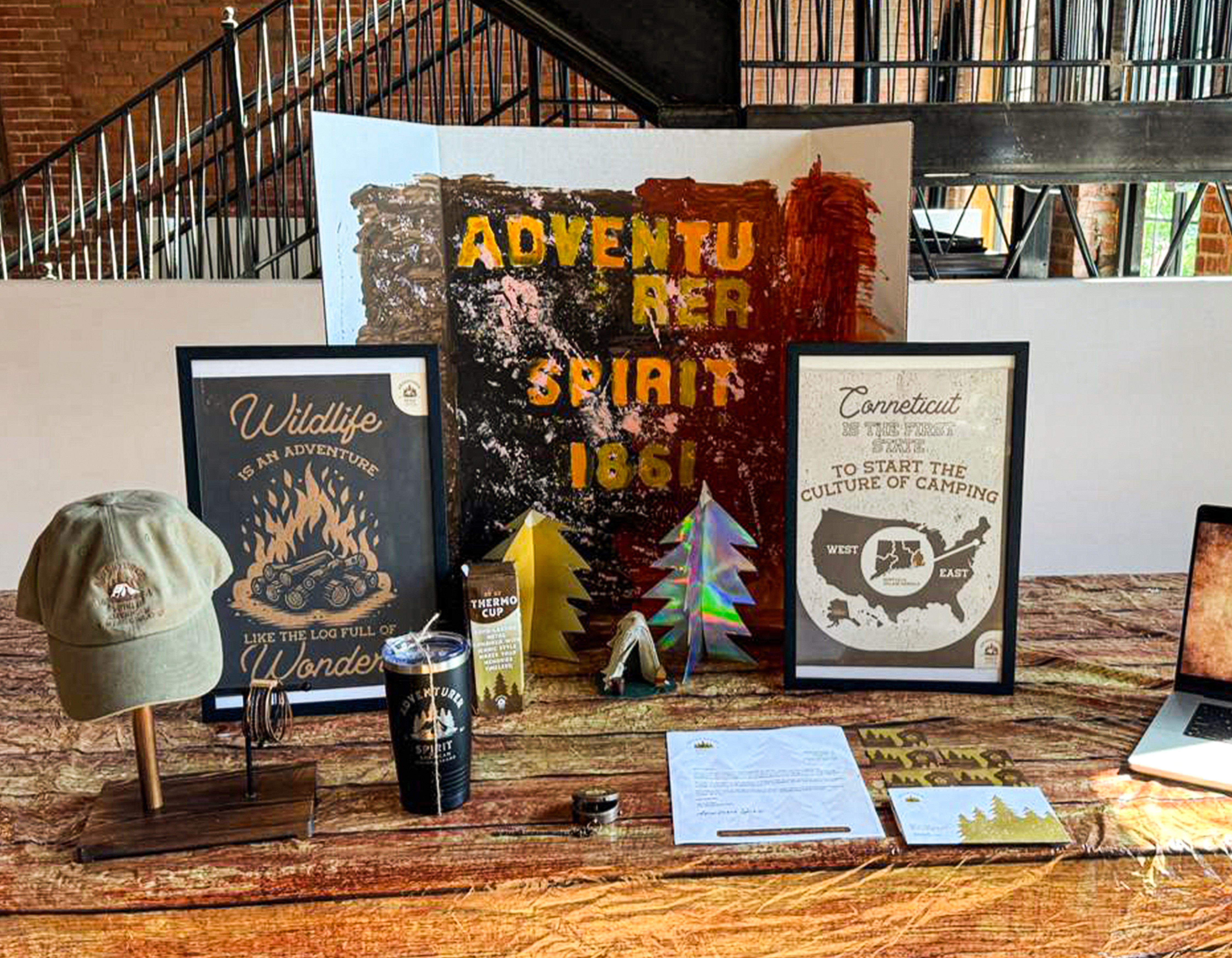 The "Adventurer Spirit" project, the final thesis for the graphic design undergraduates of Park University, was presented on May 3rd, 2024, at UNION 848 Modern Event Space in Kansas City. It was organized by the Graphic Design Department at Park University and Baldwin Vernon. The project draws inspiration from Connecticut’s rich history and timeless traditions, blending old-fashioned elegance with a rugged, refined aesthetic. The presented material reflects the classic charm of New England, celebrating craftsmanship and the spirit of exploration. The aim was to create an immersive experience that would inspire others to embark on their own travels, sparking a sense of adventure and wanderlust. Incorporating vintage aesthetics, the design utilizes light and dark brown colors, evoking the timeless charm of old styles, along with rusty and dusty textures to emphasize the presence of old-fashioned craftsmanship.
