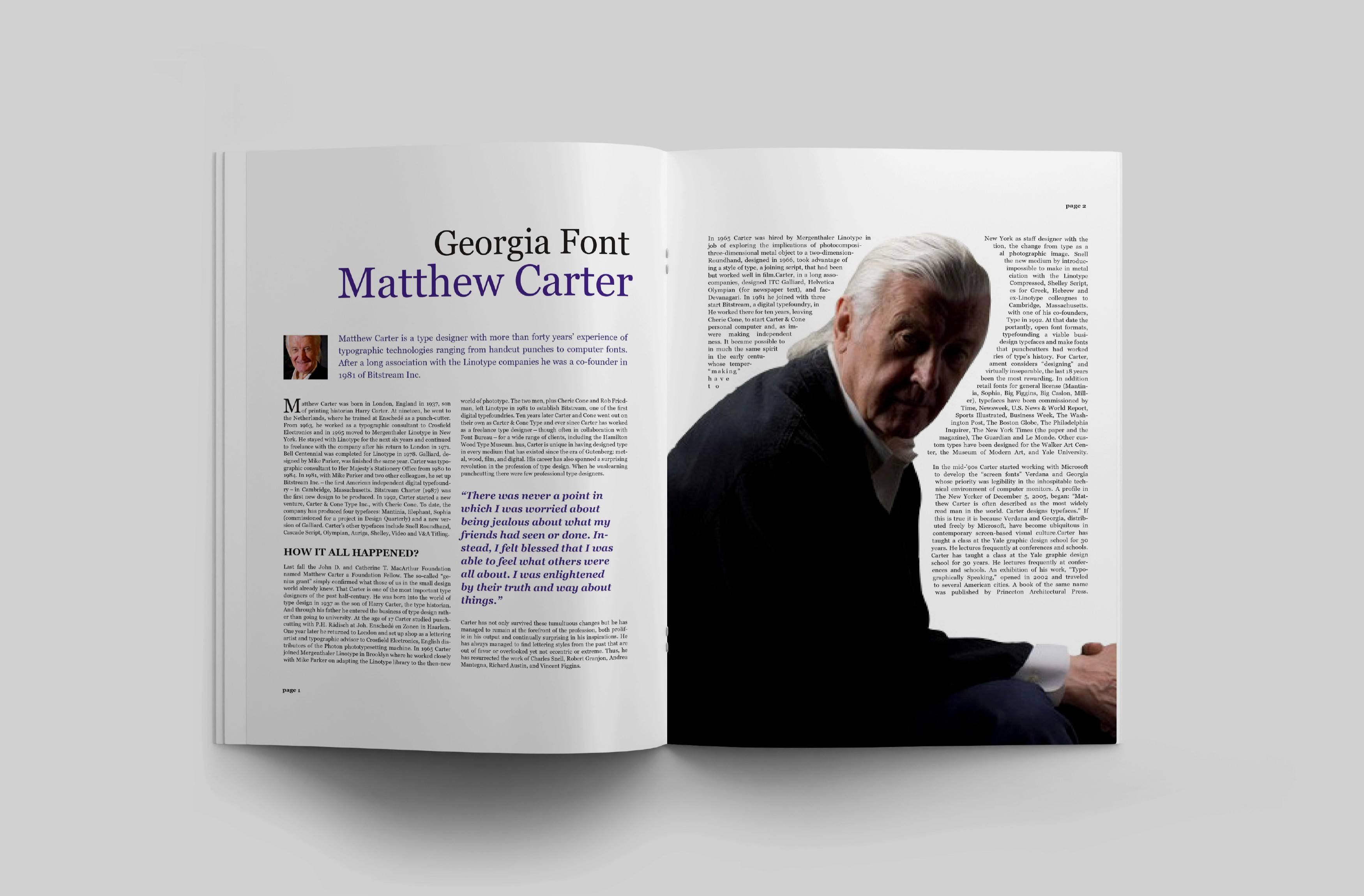 First up, my favorite designer Matthew Carter. I chose his classic font, Georgia, to create a clean, timeless vibe for the layout. The whole thing just clicked, giving me a chance to highlight my typography skills in the most stylish way possible.