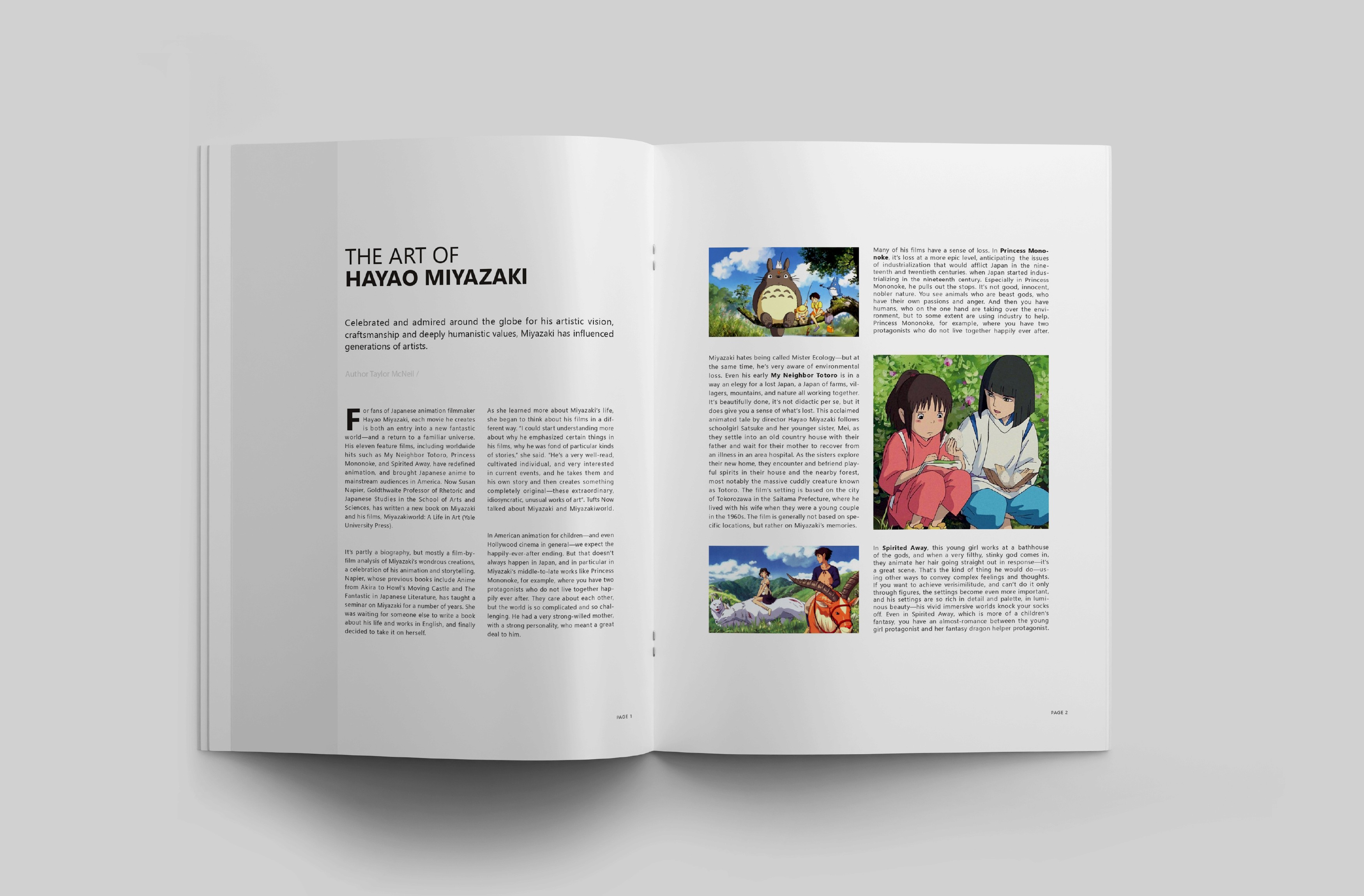 And last but not least, I dove into the magical world of anime, inspired by the one and only Hayao Miyazaki. I created a concept that celebrated the artistry and imagination behind his masterpieces. The layout was whimsical and dreamlike, filled with gorgeous, flowing elements that brought the beauty of his work to life on the page.